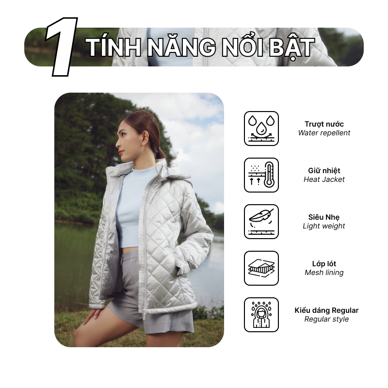 - Chất liệu: Trượt nước nhẹ, siêu nhẹ (48% Polyester, 52% Nylon).